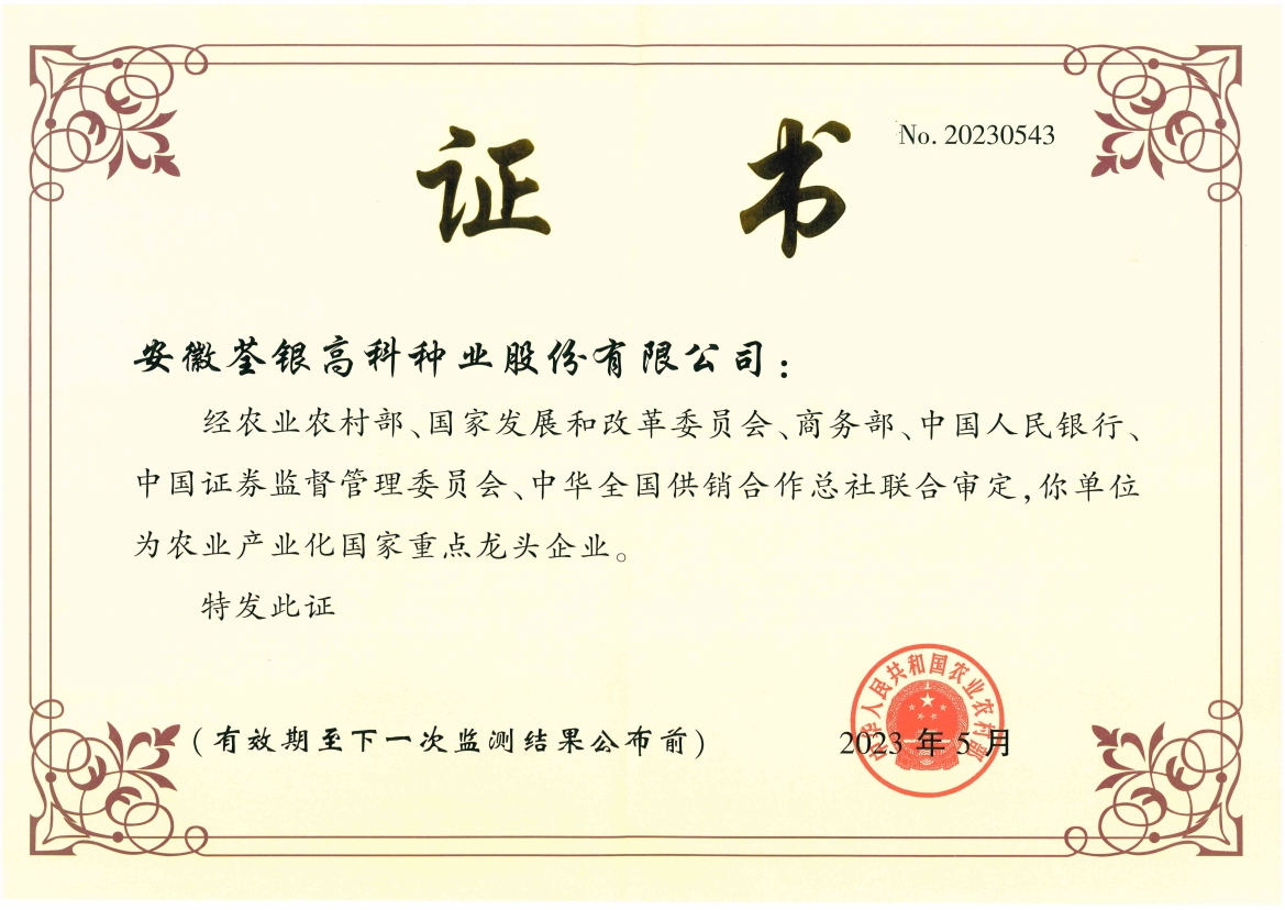 安徽荃銀高科種業(yè)股份有限公司是一家“以種業(yè)為核心、農(nóng)業(yè)服務為延伸、探索和創(chuàng)新農(nóng)業(yè)多元化發(fā)展”的現(xiàn)代高科技種業(yè)上市公司,證券代碼:300087。公司注冊資金9.47億元,系“中國種業(yè)領軍企業(yè)、農(nóng)業(yè)產(chǎn)業(yè)化國家重點龍頭企業(yè)、國家高新技術(shù)企業(yè)、農(nóng)業(yè)部首批農(nóng)作物種子育繁推一體化企業(yè)、中國種業(yè)信用明星企業(yè)"。在國內(nèi)控股子公司20多家,在國外設立分支機構(gòu)4家,良種銷售至全國20多個?。ㄊ?、區(qū)),出口覆蓋20多個國家與地區(qū),種業(yè)綜合實力、雜交水稻研發(fā)、推廣及海外業(yè)務規(guī)模均居全國種子企業(yè)前2位。